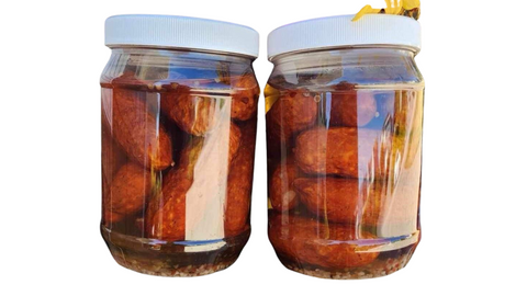 At Two Pickled Ukes, our sausages are more than just a snack—they’re a celebration of bold flavour and craftsmanship. Made from the finest cuts of meat and pickled to perfection, our sausages deliver a tangy, robust taste that’s become a favourite at local gatherings. Whether you’re enjoying our classic Pickled Sausage or reaching for the heat of our Hot Pickled Sausage, every bite is packed with quality and flavour. Perfect for adding a zesty twist to your meals or enjoying straight from the jar, our sausages are the perfect way to bring a bold taste of tradition to any occasion.